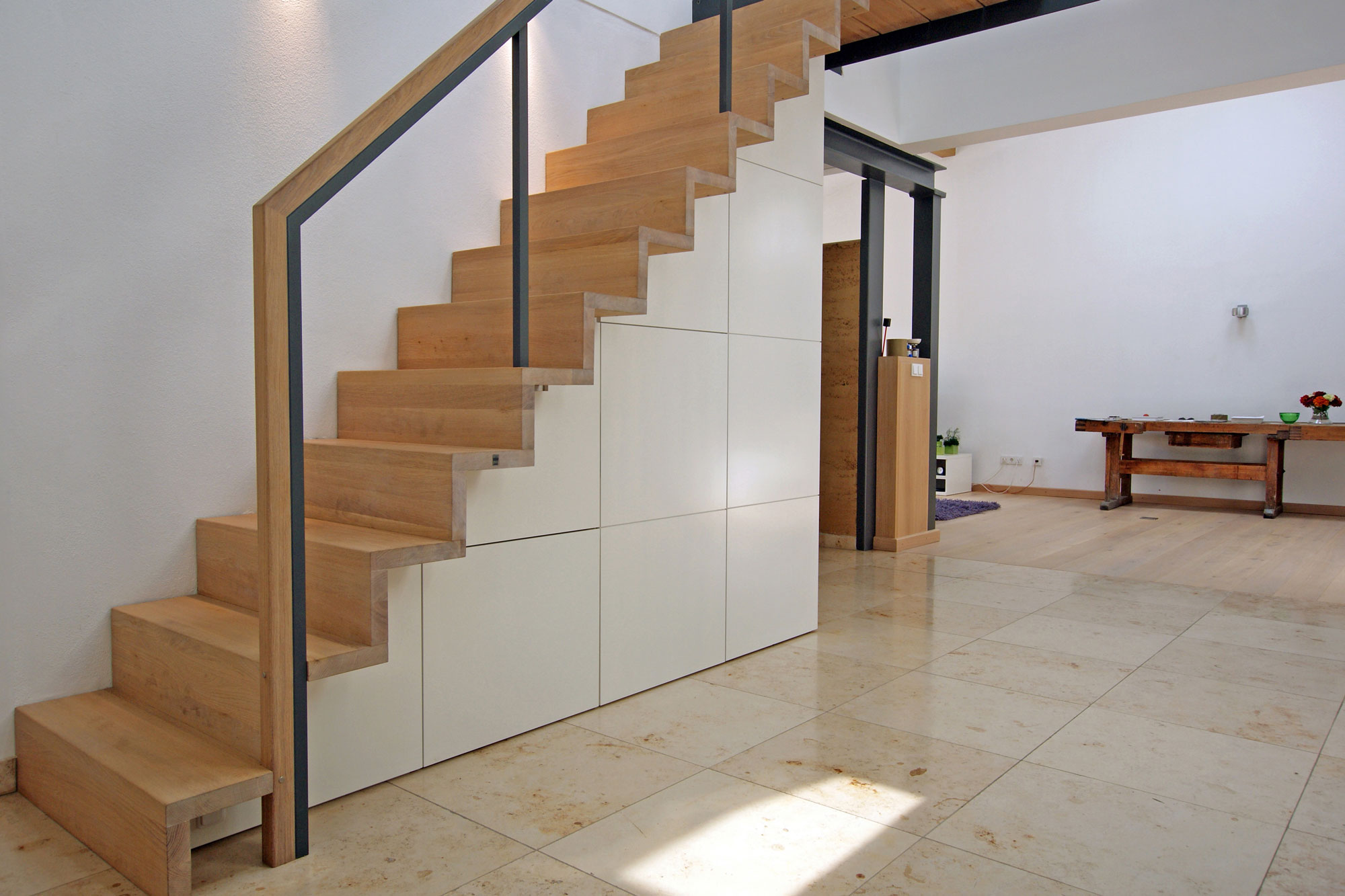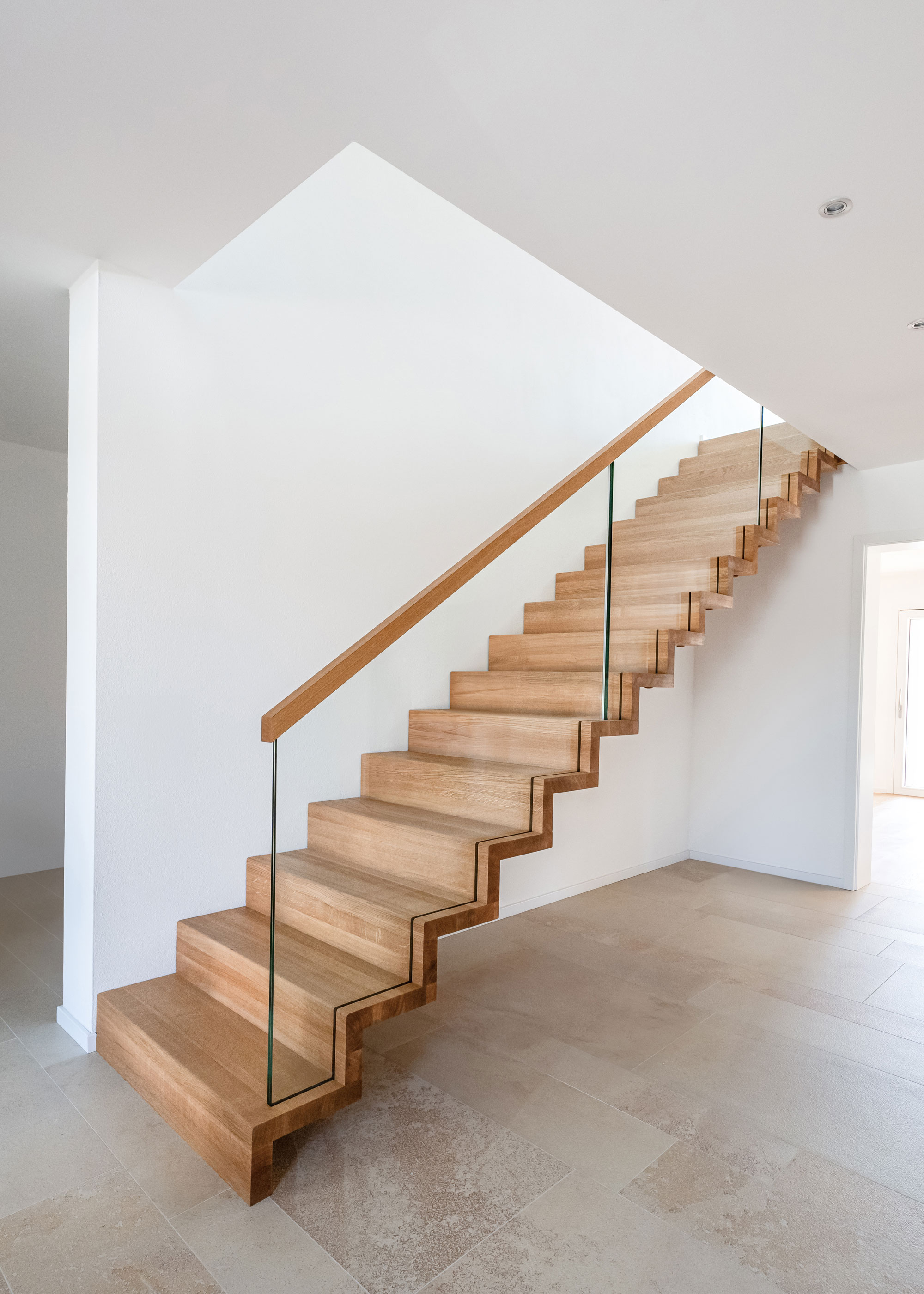 Ob aus warmem Massivholz oder kombiniert mit Glas und Stahl – jede Treppe wird individuell gefertigt und fügt sich harmonisch in Ihr Zuhause ein.