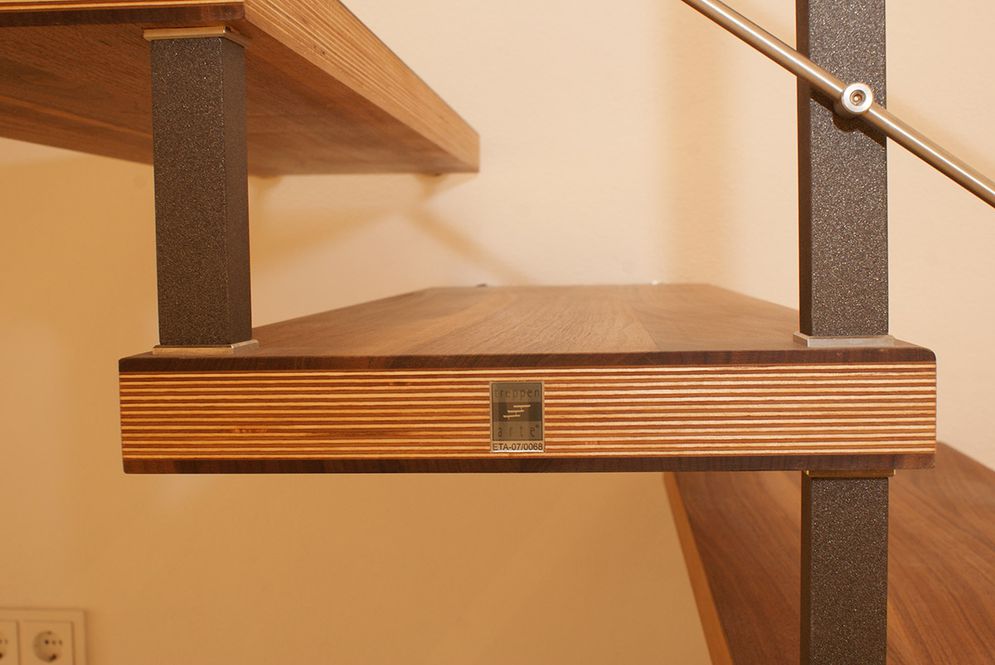 Schichtverleimte feine Echtholzfurniere sorgen für eine besondere Festigkeit. Ihre Treppe ist somit bestens gegen Verformungen, die durch Wärme, Kälte oder Feuchtigkeit entstehen geschützt. Dieses hochwertige Material ist auch für Holzstufen auf eine betonierte Treppe bestens geeignet.