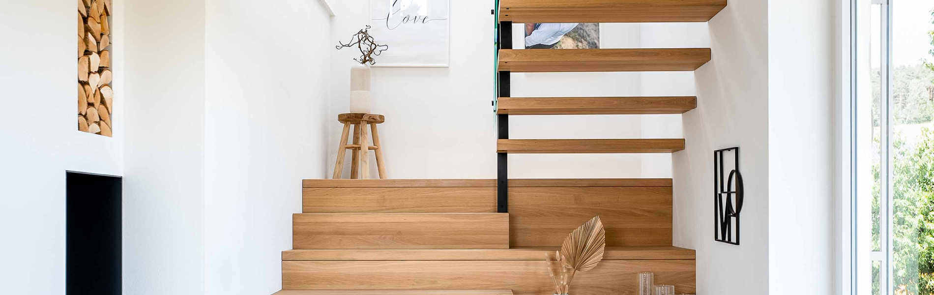 Mit ausgewählten Hölzern, Glas und Stahl gestalten wir Ihre Treppe individuell und harmonisch, sodass sie sich perfekt in Ihr Zuhause einfügt.