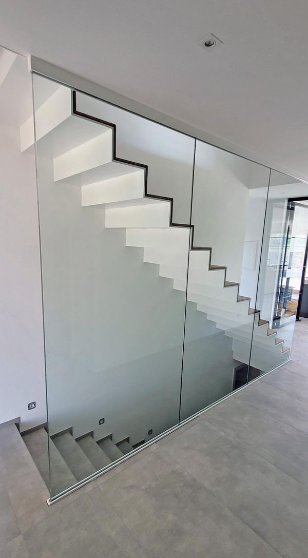 In Kombination mit massiven Holzstufen entsteht ein spannender Kontrast aus Wärme und kühler Eleganz.